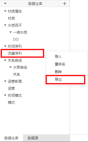 功能介绍:数据仓库栏用于展示、管理各项数据,用户通过数据仓库栏,可实现数据的添加、重命名、删除、导入、导出操作