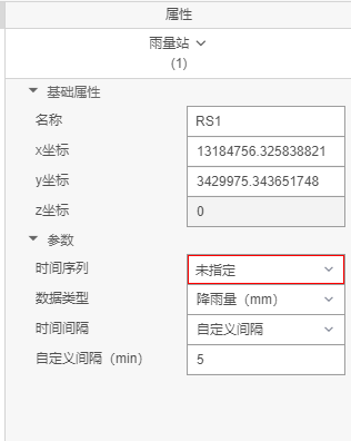 雨量数据,支持用户指定时间序列为雨量数据,当用户需要使用【权重分配】工具分配时,坐标位置需要与实际相符